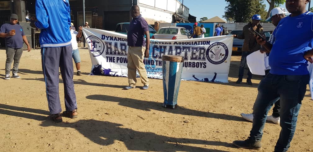 After over a week of mobilising on social media and other platforms, scores of Dynamos supporters dressed in their iconic blue-and-white colours gathered at Joy Centre in Highfield.
